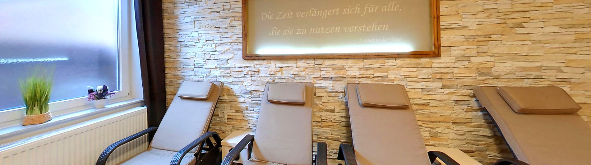 Damit Sie sich schon einmal einen virtuellen Einblick in unsere Wellness-Landschaft verschaffen können, haben wir einen 360°-Rundgang der Räumlichkeiten erstellen lassen: